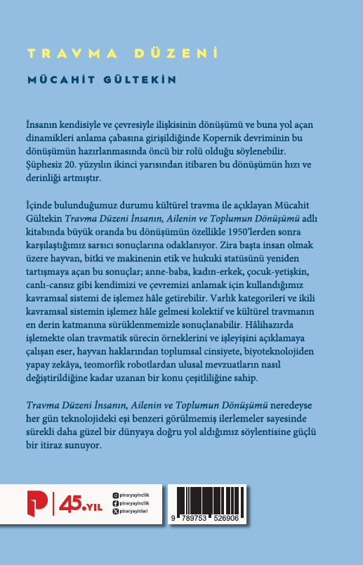 İçinde bulunduğumuz durumu kültürel travma ile açıklayan Mücahit Gültekin Travma Düzeni İnsanın, Ailenin ve Toplumun Dönüşümü adlı kitabında büyük oranda bu dönüşümün özellikle 1950’lerden sonra karşılaştığımız sarsıcı sonuçlarına odaklanıyor.