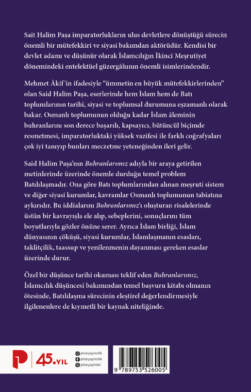 Mehmet Âkif'in ifadesiyle “ümmetin en büyük mütefekkirlerinden” olan Said Halim Paşa, eserlerinde hem İslam hem de Batı toplumlarının tarihî, siyasi ve toplumsal durumuna eşzamanlı olarak bakar. Osmanlı toplumunun olduğu kadar İslam âleminin buhranlarını son derece başarılı, kapsayıcı, bütüncül biçimde resmetmesi, imparatorluktaki yüksek vazifesi ile farklı coğrafyaları çok iyi tanıyıp bunları meczetme yeteneğinden ileri gelir.