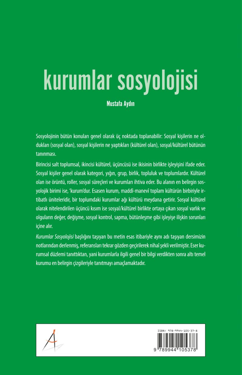 Kurumlar sosyolojisi başlığını taşıyan bu metin esas itibariyle aynı adı taşıyan dersimizin notlarından derlenmiş, referansları tekrar gözden geçirilerek nihai şekli verilmiştir. Eser kurumsal düzlemi tanıttıktan, yani kurumlarla ilgili genel bir bilgi verdikten sonra altı temel kurumu en belirgin çizgileriyle tanıtmayı amaçlamaktadır.
